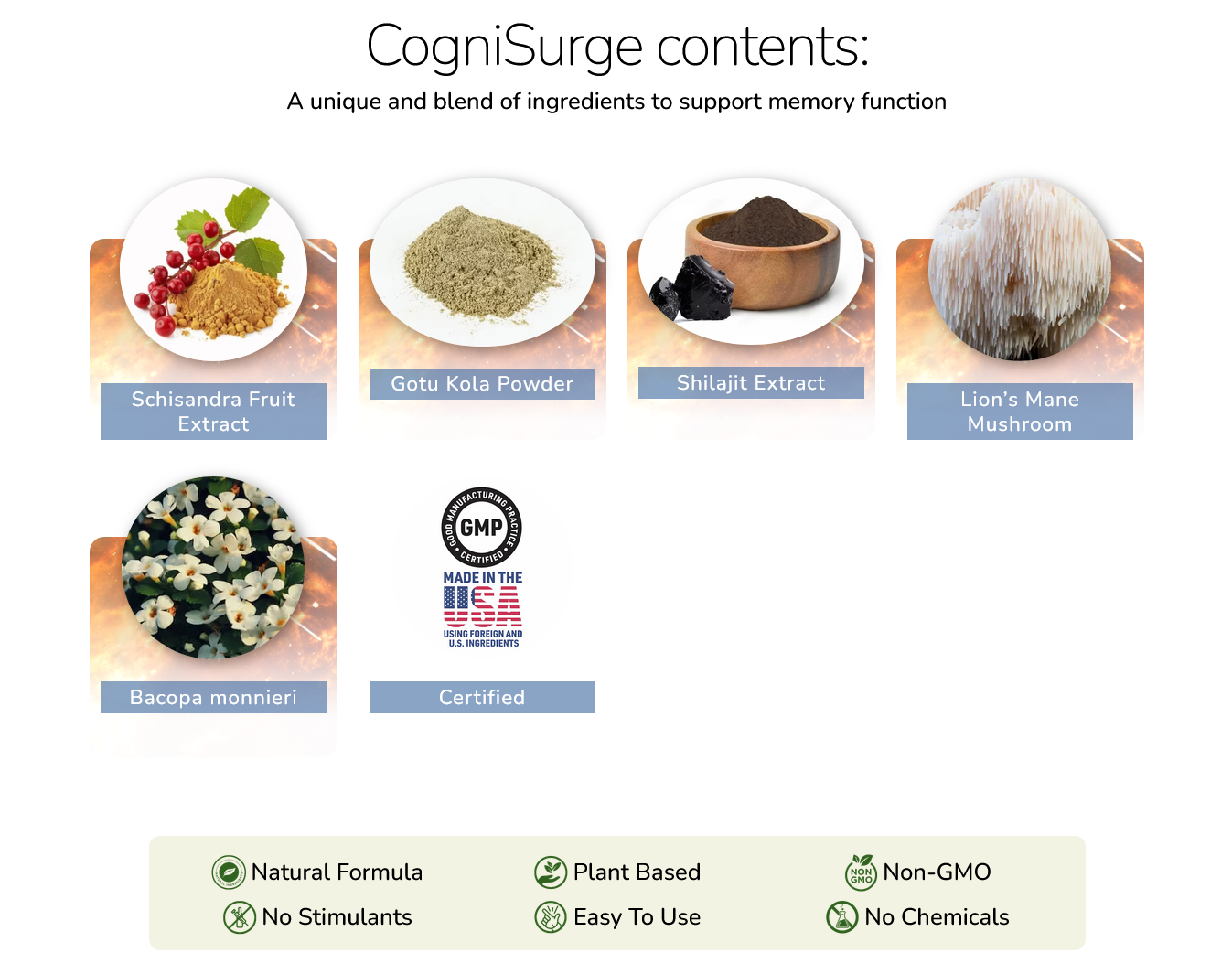 Each ingredient in CogniSurge was carefully selected for its scientifically proven ability to support brain health and restore cognitive function. Here’s what makes this formula so powerful: