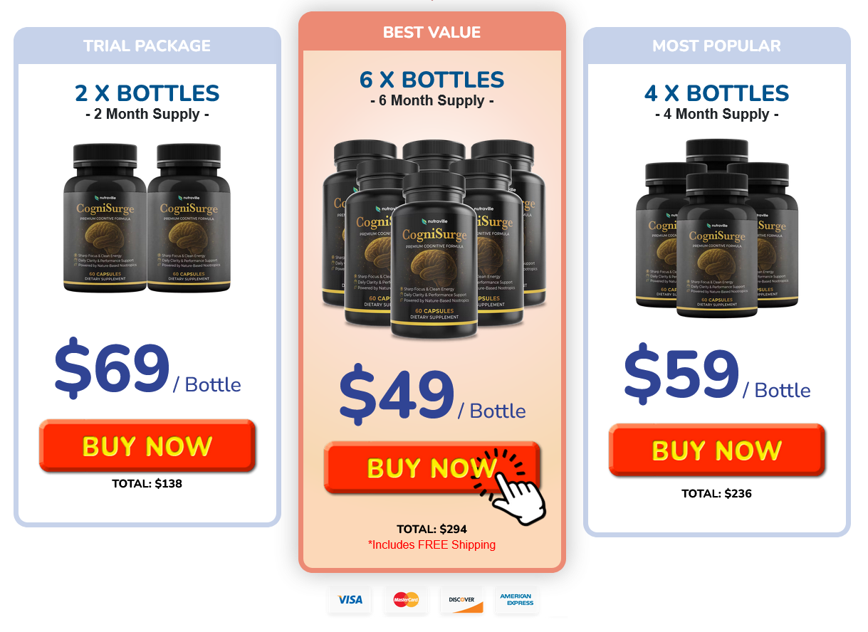 CogniSurge offers flexible purchasing options designed to fit different budgets while maximizing savings. The more you commit to your brain health, the greater your savings.