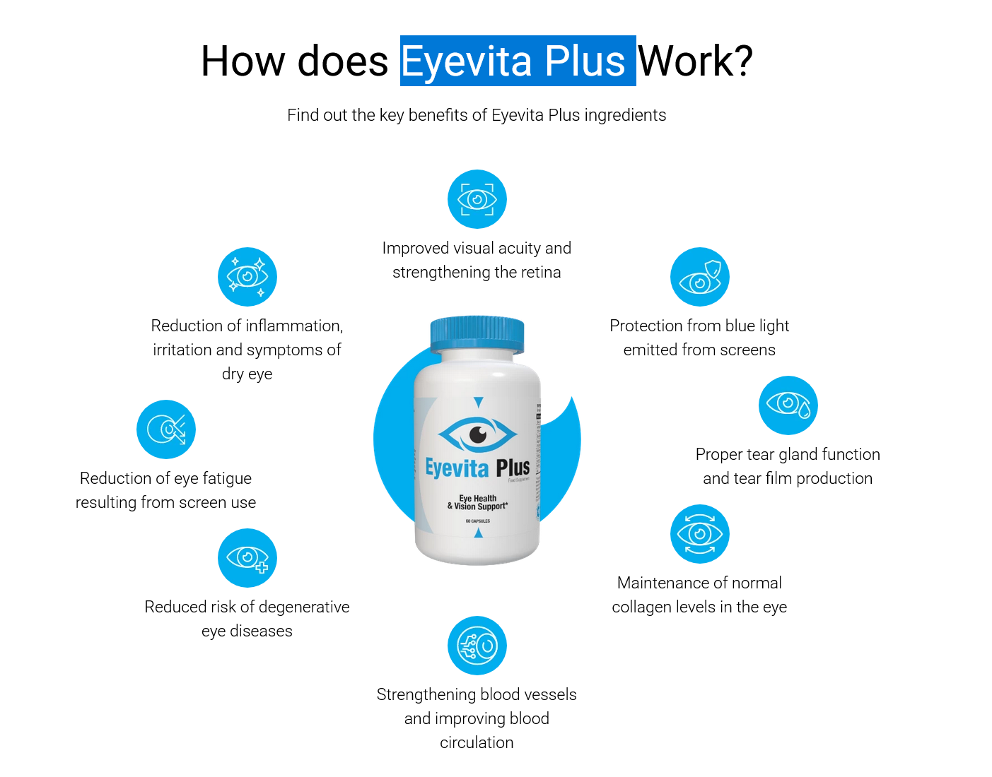 Eyevita Plus offers multiple benefits that address various aspects of visual health:
