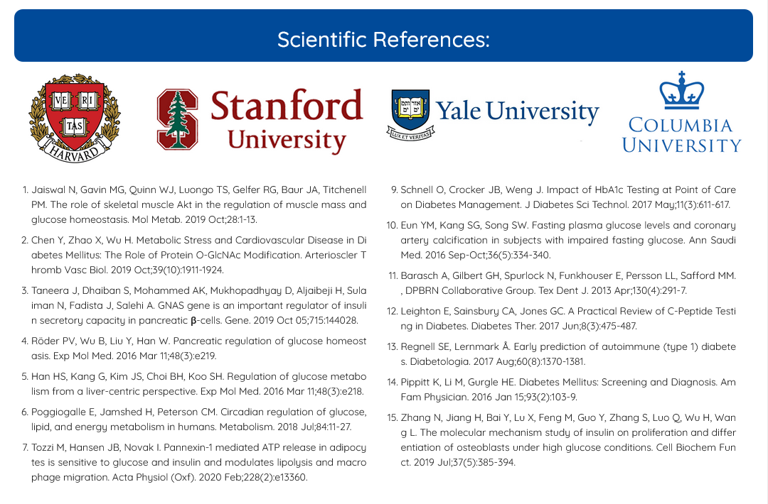 In simple terms: The combined action of these botanicals and minerals helps your body manage the entire glucose process—from the moment sugar enters your system (reduced absorption) to how it is used by your cells (improved insulin signaling).