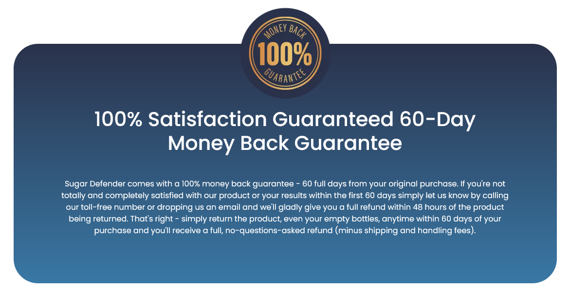 Sugar Defender comes with a full 60-day satisfaction guarantee. If you’re not completely satisfied with your results, you can request a full refund—no questions asked. This risk-free trial allows you to test the supplement without worry.