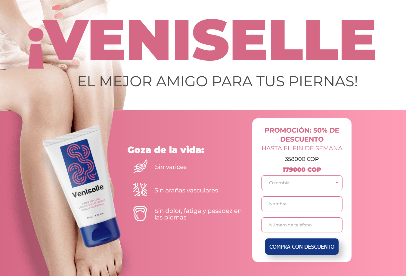 ¡No te pierdas esta oferta exclusiva para Colombia. Tu viaje hacia piernas más saludables y hermosas comienza hoy!